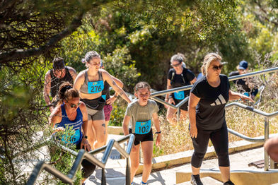 We invite you to run past the old homestead through the hilly trails and enjoy the views out to Rottnest and the surrounding Islands. You will then head back into the park climb 200 stairs back into the trails.